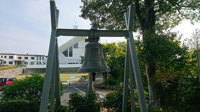 記念聖堂の建物を出ると、駐車場近くの敷地にザビエル像と鐘を発見。訪れた人たちが、カーンとそこら中に響き渡るきれいな鐘の音を鳴らしていました。