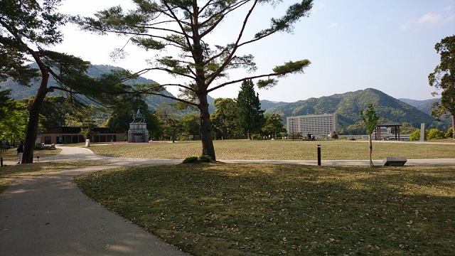 ザビエル像の脇にある階段をのぼっていくと、亀山公園山頂広場に着きます。はじめて来てみましたが、とってもきれいに整備された芝生広場です。