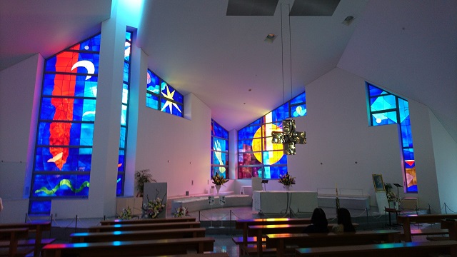 美しいステンドグラスと聖堂内に鳴り響くパイプオルガンの音。どなたでも、非日常の神聖な空間に浸ることができます。