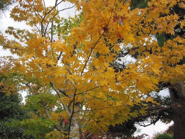 庭園入口あたりにある黄色のカエデも素敵ですよ。