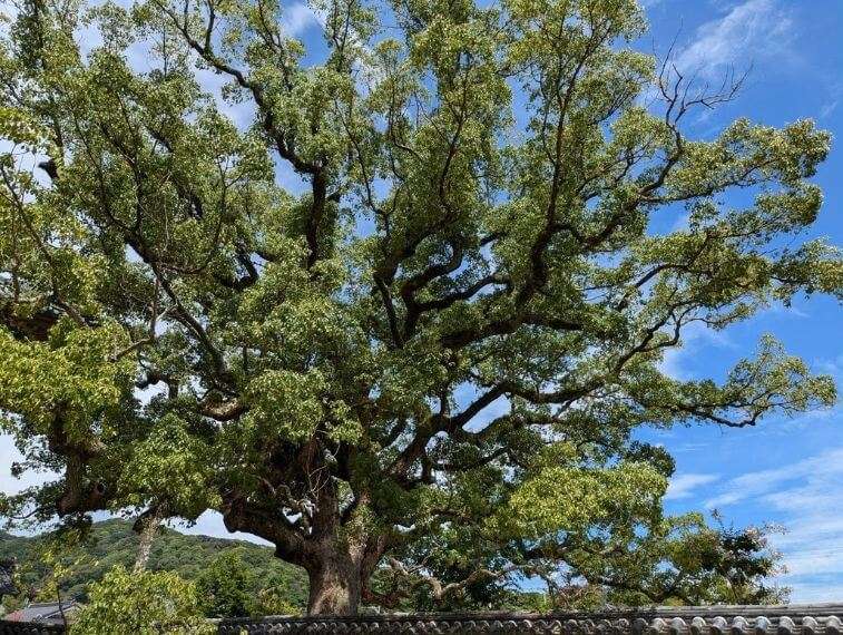 楼門のそばには、樹齢600年を誇る大楠の木があります。