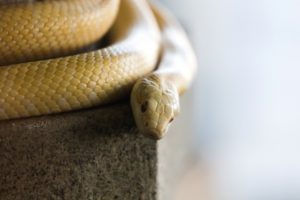 少し黄色がかった白い身体と、赤色の目が美しい白蛇。