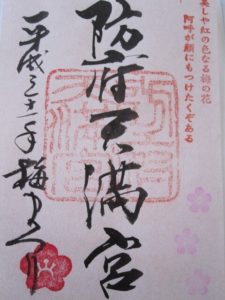 御朱印に書かれている歌は、太宰府に左遷される途中に防府に立ち寄られた道真公が(願わくば京都と地続きのこの地に住まいを構え、天皇からの無実の知らせを待っていたい)と願って詠んだ歌です。
