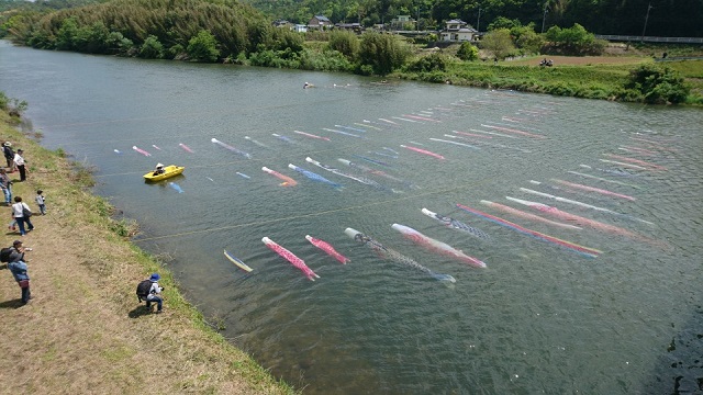 この水の中のこいのぼりの川流し。地元の方々が地域を盛り上げようとおよそ10年前から始めた取り組みです。
