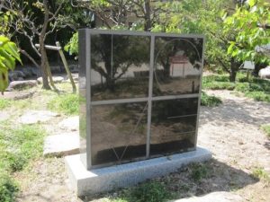 防府市内に在住のご夫妻が、大病に侵されながらも現在は元気に回復されました。そのことに感謝の気持ちをこめて、平成19年に奉納されました。石碑のデザインは、日本を代表するデザイナー浅葉克己氏によります。