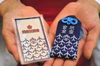 布袋入りの肌守と、パイロットが携帯しやすいカードタイプもあります。