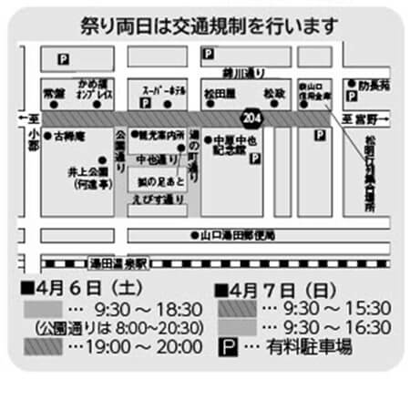 まつりの2日間は、湯田温泉周辺で交通規制があります。