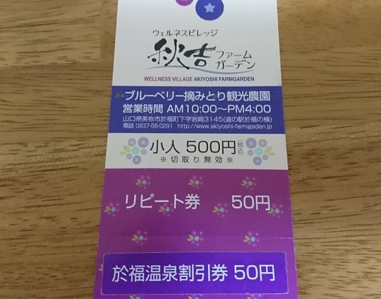 こちらの農園では、受付で料金を支払ったときにチケットをもらえるのですが、そのチケットに割引券がついてきます。