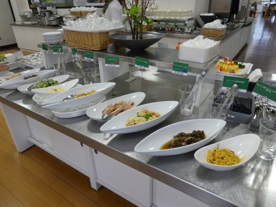 案内を受けて席に着く間に、ランチバイキングのいろんな食材が目に入ってきます。