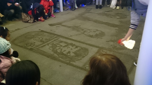 夏にも暑い中描かれているのを見たことがありますが、夏は3分で消えちゃうそう。瞬間の芸術ですね。
