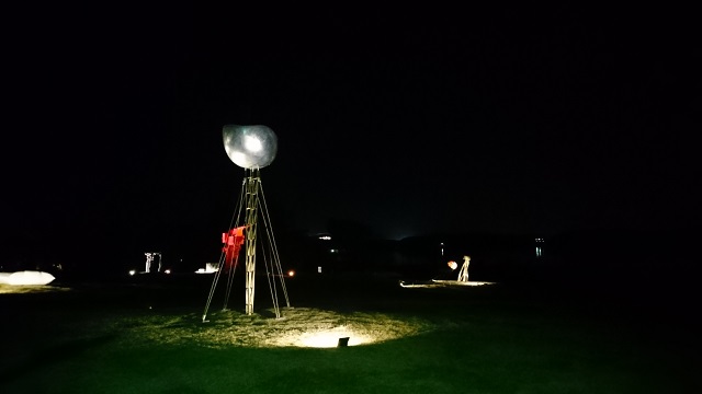 この彫刻の丘には面白い斬新な発想の作品が設置してあって、いつも親子で楽しんでますが、夜はまた違った雰囲気でまたいいですね。