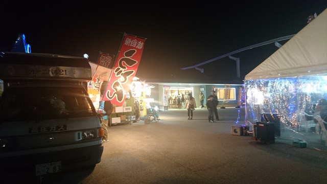 他にもイルミネーションでキラキラしたキッチンカーやオート三輪みたいなキッチンカーが来てました。わが家はほかの屋台で焼きそば買いましたが。