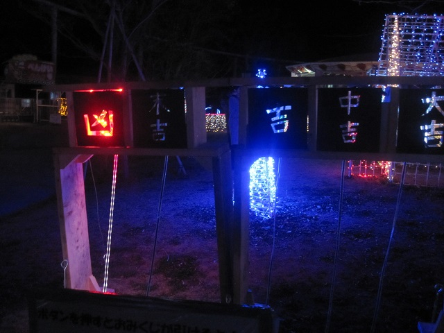 ボタン押したら一度全部が光って、そのあと当たったくじが赤く点灯。わたし、大吉でした。娘、凶・・・(笑)これ、一番ツボにはまったイルミネーションだったかもです!