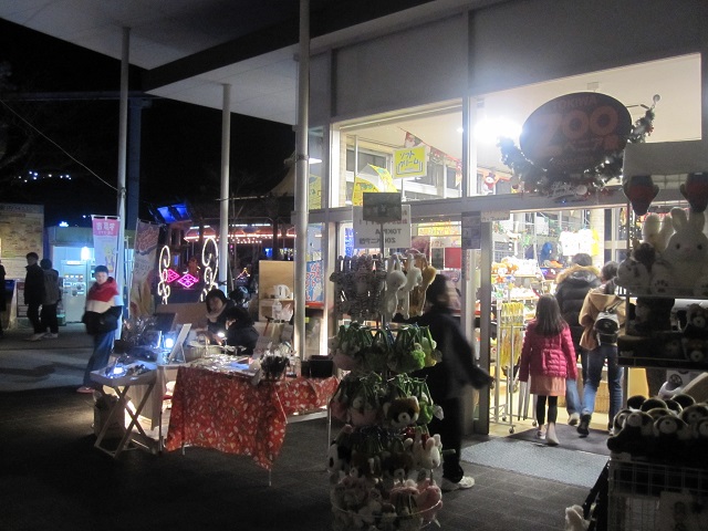 毎週金、土の16時から21時、お土産や食べ物を売っているZOOべニア館の前に、手作り雑貨のお店が並んでます。これも去年はなかったなあ。
