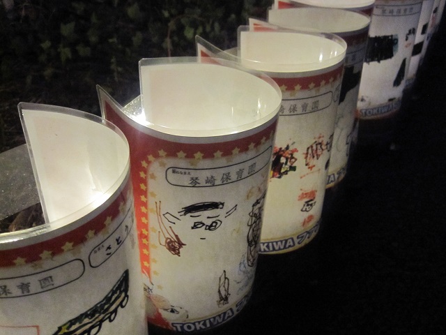 ひとつひとつを見てみると、かわいい絵が。子どもたちの心がこもった絵やメッセージが集まって幻想的な灯りの通路を作り出すなんて、素敵な試みですよね。