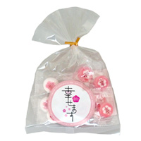 透明の袋の中には、道真公が愛した紅白の梅の花を表した、とってもかわいいキャンディーが12個入っています。きつすぎない優しいピンク色と白に優しい気持ちになります。