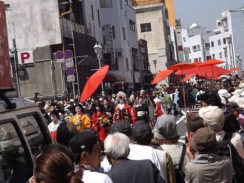 女官が絶えた後、江戸時代になって遊郭ができ、廓の主人が女官たちのまごころとその美しい出で立ちを伝えようと、お抱えの遊女たちに参拝を続けさせたといわれています(諸説あり)。