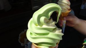 はじめて錦帯橋を渡った時にまずびっくりしたのは、どどーんと建っている2軒の大きなソフトクリーム屋さん。