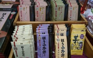 「芋ういろう」は地元防府の高校生の発案から生まれたそう。外郎が町おこしに一役買ってますね。
