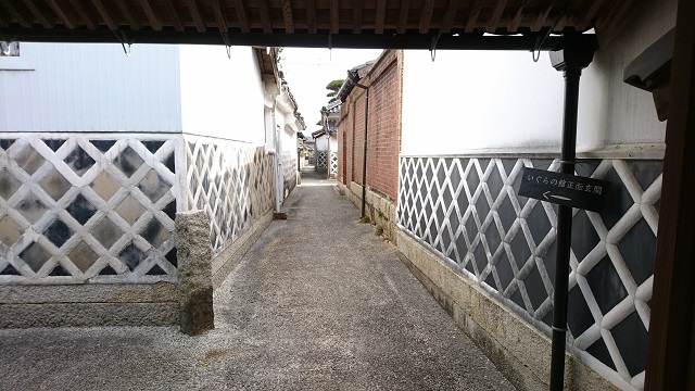 かつて港として栄えていた縄田地区には、江戸時代から大正時代にかけて造られた、火事から家を守るための「居蔵(いぐら)造り」といわれる白壁の街並みが残っています。