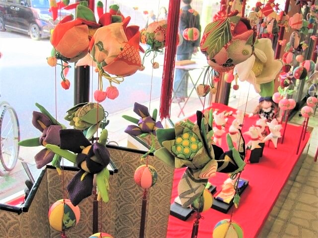 「ひなもん」とは、阿知須地区でちりめんや古布などを使って作られるつるし飾りのこと。