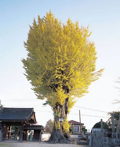 お寺の境内には、防府市指定天然記念物に指定された樹齢800年と言われるイチョウの木があり、秋の紅葉シーズンには美しく黄金色に色づいたイチョウを見に多くの人が訪れます。