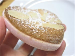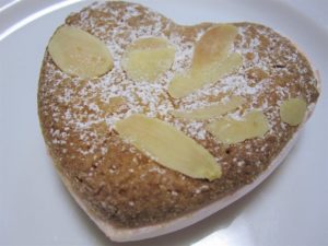 で、このハートを裏返すと・・・こんがり生地にスライスアーモンドと粉砂糖がのって、美味しそう♪