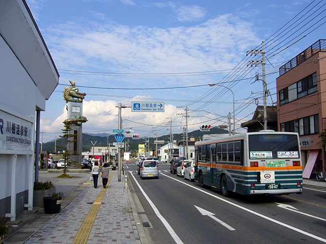 駅の前を通っている国道191号線を渡り、少し歩くとブルーライン交通の「川棚駅」バス停があります。