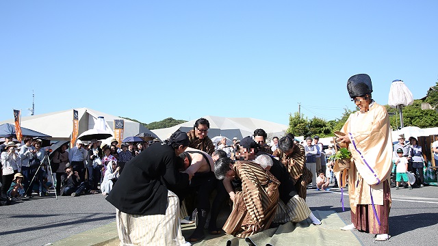 神事では、青龍権現の祠の前で餅をつこうとする村人(善玉)と、それを阻止しようとする災厄(悪玉)による、手に汗握るせぎ合いが繰り広げられます!