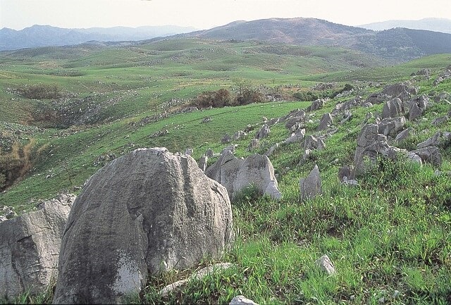 山焼きの後真っ黒になったカルスト台地は、春になるとふたたび草や花が芽吹き、5月には一面美しい新緑で覆われます。