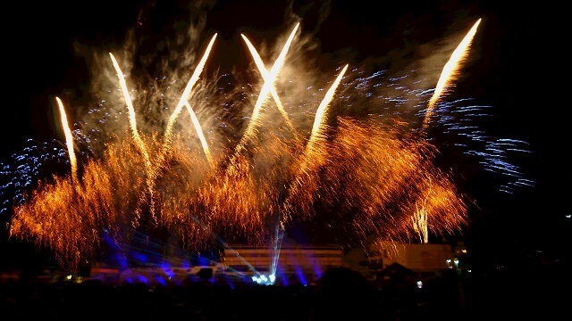 最終日である5日に、祭のクライマックスとして約4000発の花火が打ち上げられます。