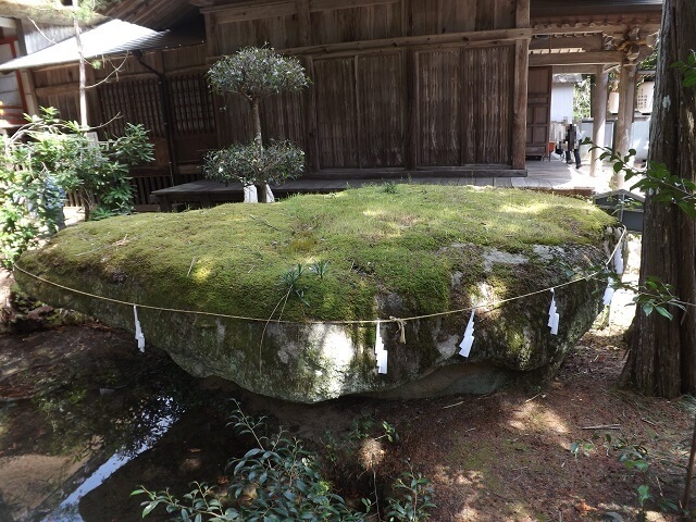 本殿のとなりに、きれいなコケに覆われた大きな石を発見。