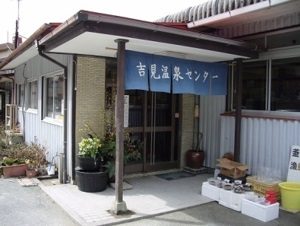 県道244号線を豊浦町方面に進むと、右手に「吉見温泉センター」の看板があります。