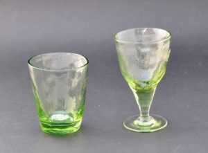萩ガラスは、うす緑色がれいなとても丈夫なガラスです。日本最小の火山である、萩市笠山の石英玄武岩を使って作られています。