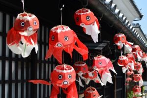 白壁の街並みが美しい柳井といえば、金魚ちょうちんです。およそ150年前に青森のねぶたをヒントに作られたのだそうですよ。今では山口の代表的な民芸品のひとつです。