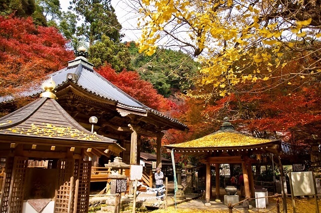 山の木々に囲まれた龍蔵寺は、秋の紅葉も見事です。