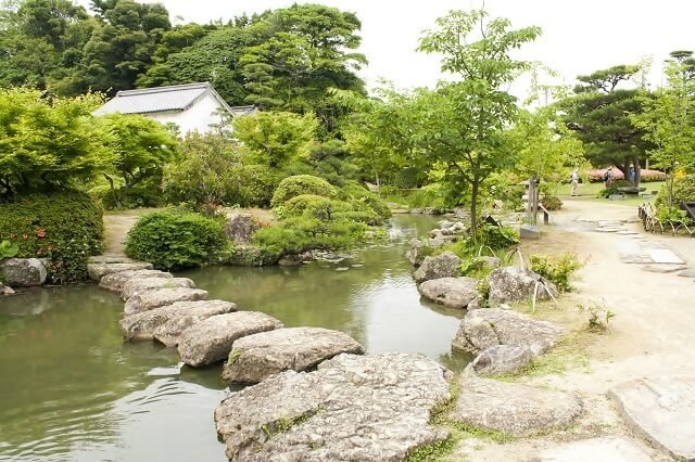 城下町長府にある長府庭園は回遊式の美しい庭園として有名な観光スポットです。
