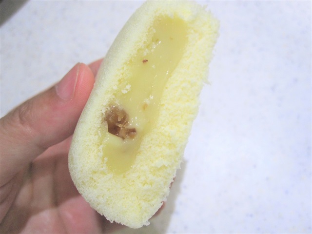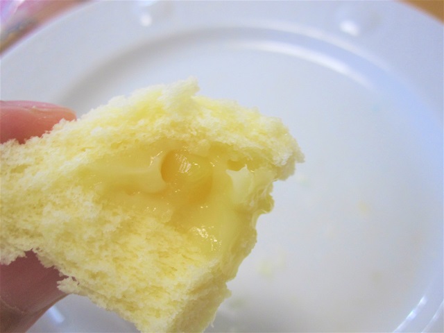 割ってみると優しい色のとろっとしたクリームが、柔らかいカステラ生地に包まれています。