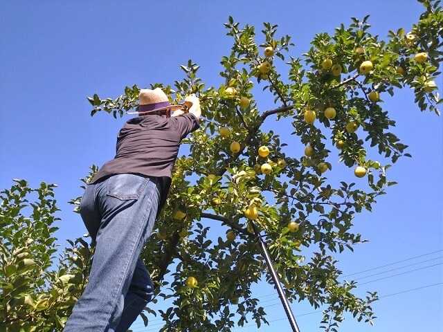 本州のいちばん西にある山口県でこうしてりんご狩りを満喫できるなんて、最高です!