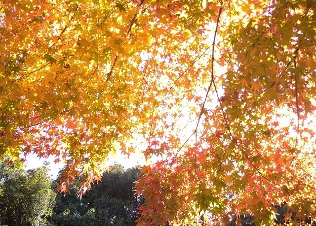 場所によっては太陽の光でもみじの葉が鮮やかに輝いて、紅葉がさらに美しさを増していましたよ。