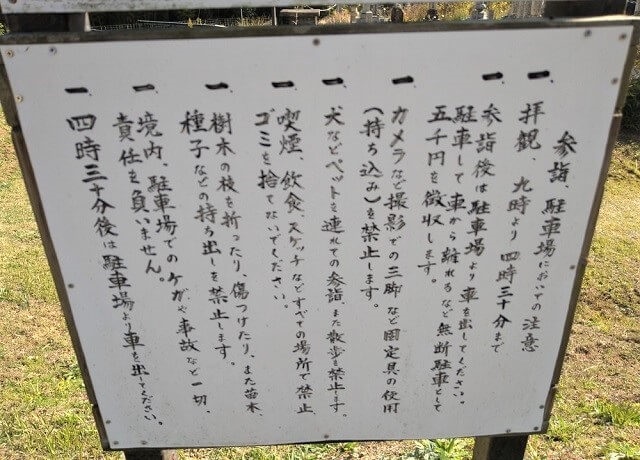 ・参拝後は駐車場から車を出すこと。無断駐車は5千円徴収。