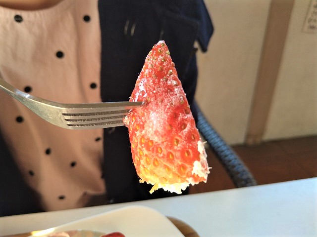 逆光で色が悪くなっちゃったんですが(;^_^A、実物はものすごくきれいな色のいちごでした!