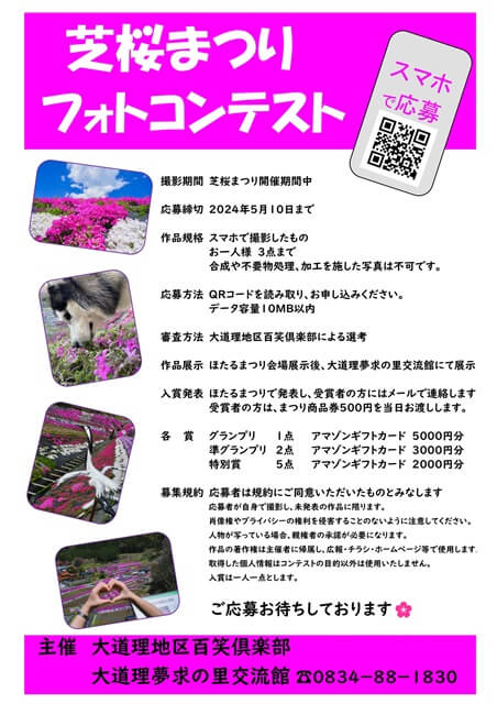 芝桜まつり開催期間中、フォトコンテストを実施します。