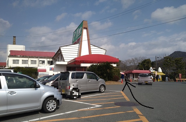 土曜のちょうどお昼時で、駐車場は車がいっぱいでした。