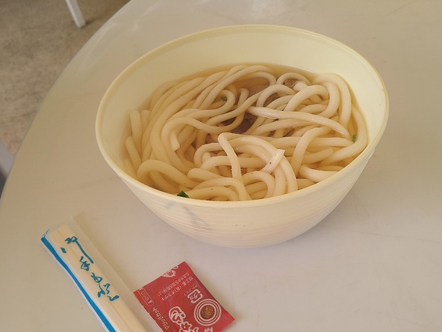 わたしたちがのんびりうどんを食べている間、たくさんの方が代わる代わる、自販機のうどんを購入してはテーブル席でぱぱっと食べていかれました。