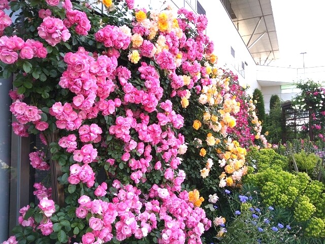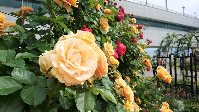 わたしも、うわさを聞きつけて娘と空港のバラを見に行ってきました。