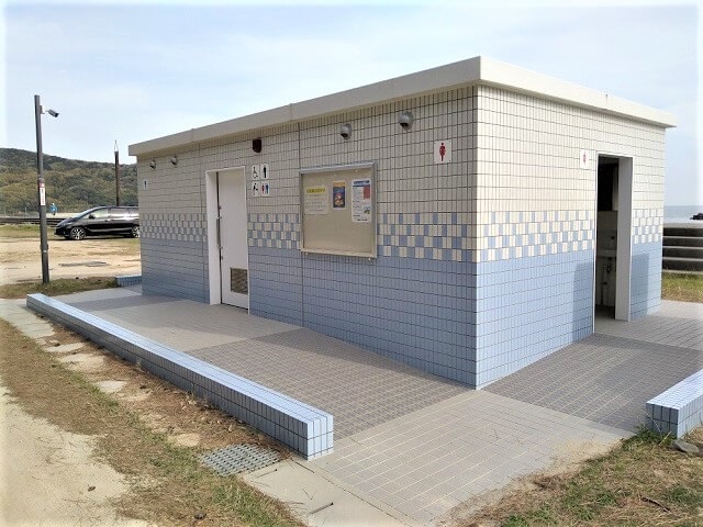 富海海水浴場のトイレは数年前に新しくなりました。どなたも気持ちよく利用できますよ。