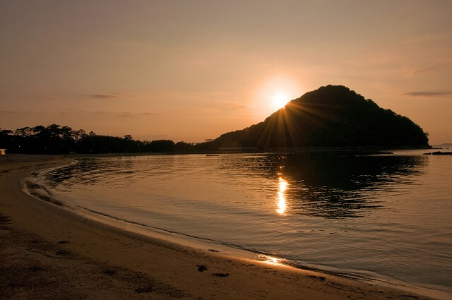 菊ヶ浜のもっとも美しい時間帯は日の入りの時刻。