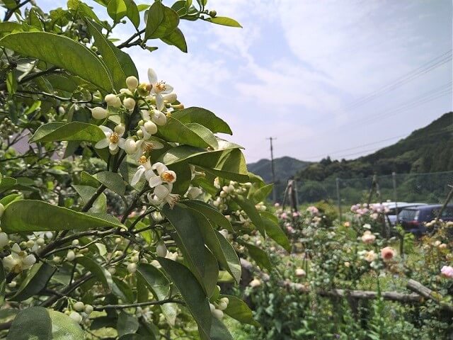 いろんな種類のバラと柑橘やキウイの花の香りも楽しめて、もう帰りたくない、ずっとここでのんびりしていたいって思ってしまいます。