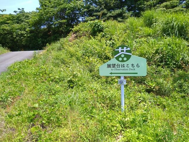 道なりに行くと茶園の展望台の場所を示す看板が立っています。